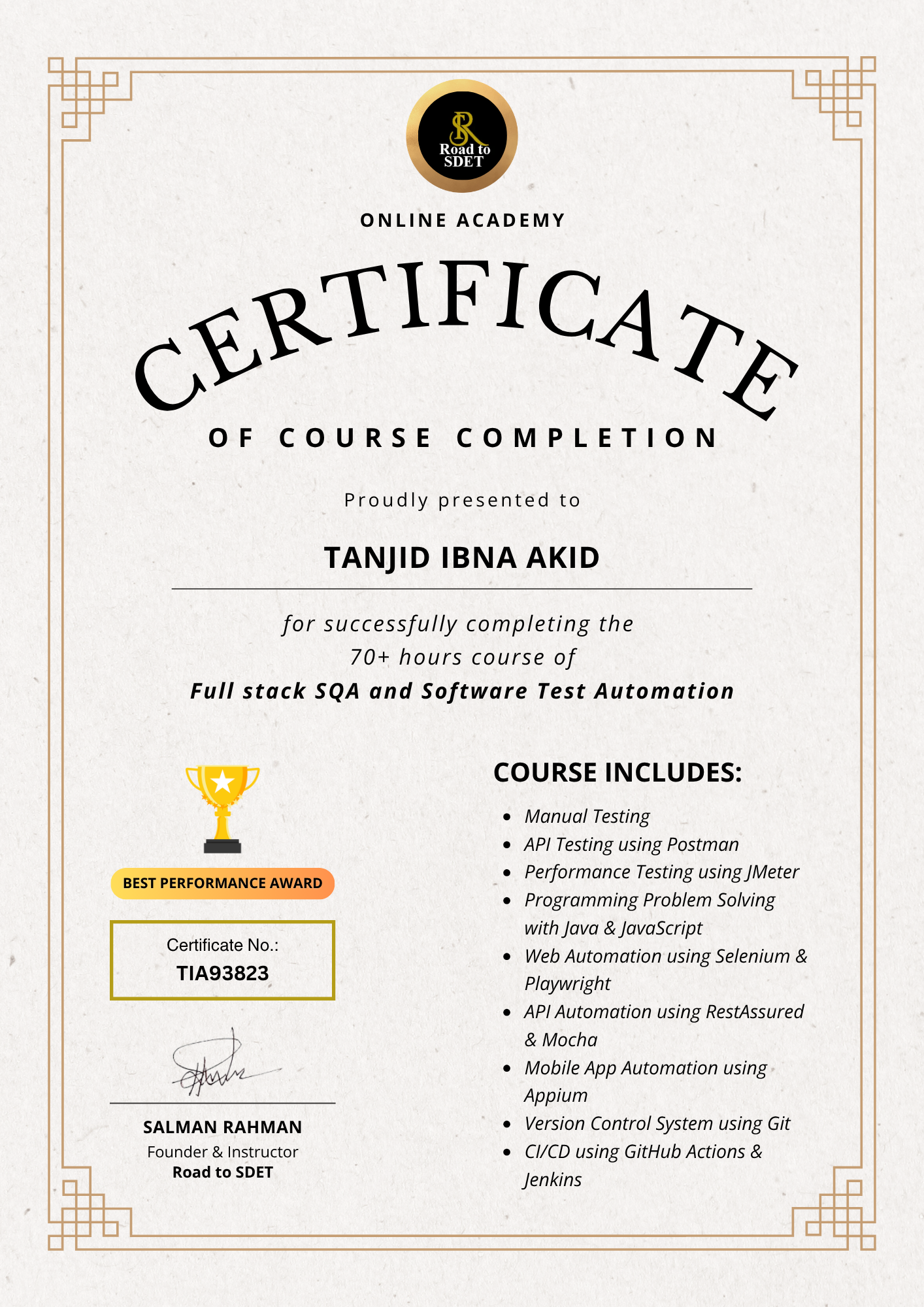 Jr. Software QA EngineerNov 2024 - Sep 20251. Requirement Analysis of The Software Under Test. 2. Preparing and Executing Test Cases. 3. Performing Regression and End-to-End Testing. 4. Performing API Testing and Automation Testing. 5. Successfully tested and delivered a newly implemented complex feature named "Pop-up Form" of the Form Builder app to live. 6. Taking responsibility for the upcoming new "GearNest" theme on the Shopify Theme Store. 7. Preparing the automation structure and scripts for the "Akij Air" project. 8. Documenting Bugs.